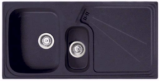 Lausanne 1.5 bowl rok metallic black composite kitchen sink with right hand drainer. Size 1000mm wide 500mm deep. Bowl depth 170mm.