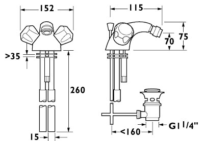 Mono bidet mixer tap in gold with pop up waste. This product can be fitted with a Deva flow restrictor to reduce water wastage and protect the environment.