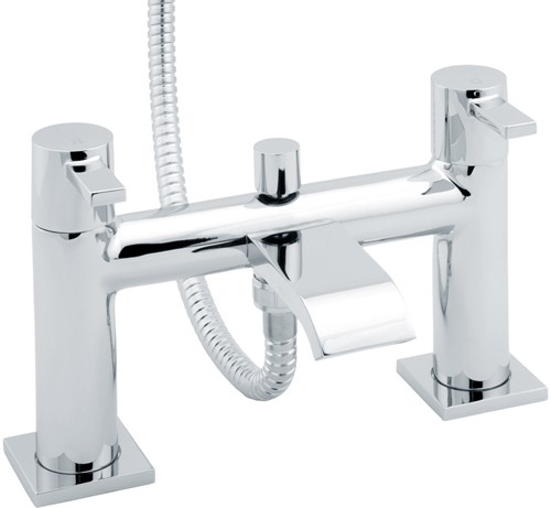 Bath shower mixer tap with shower kit and wall bracket in chrome. This tap can be fitted with Deva flow restrictors to reduce water wastage and protect the environment.