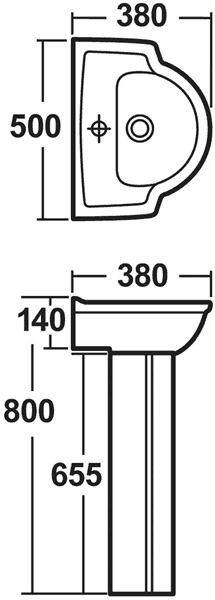 Linton basin and pedestal with 1 tap hole. Size 500W x 380D x 800H mm.