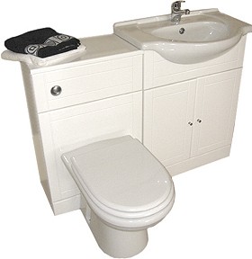 White bathroom furniture suite with tap and waste. Right handed version.