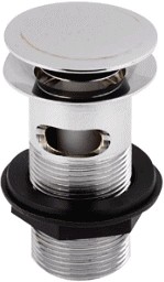 Push button basin waste with stay hole cover (unslotted). Unslotted wastes are suitable for use with basins without an overflow.